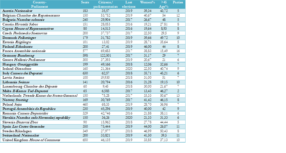 For all the following data about parliaments and parties sources: Sources: ParlGov link, InterParliamentary Union link